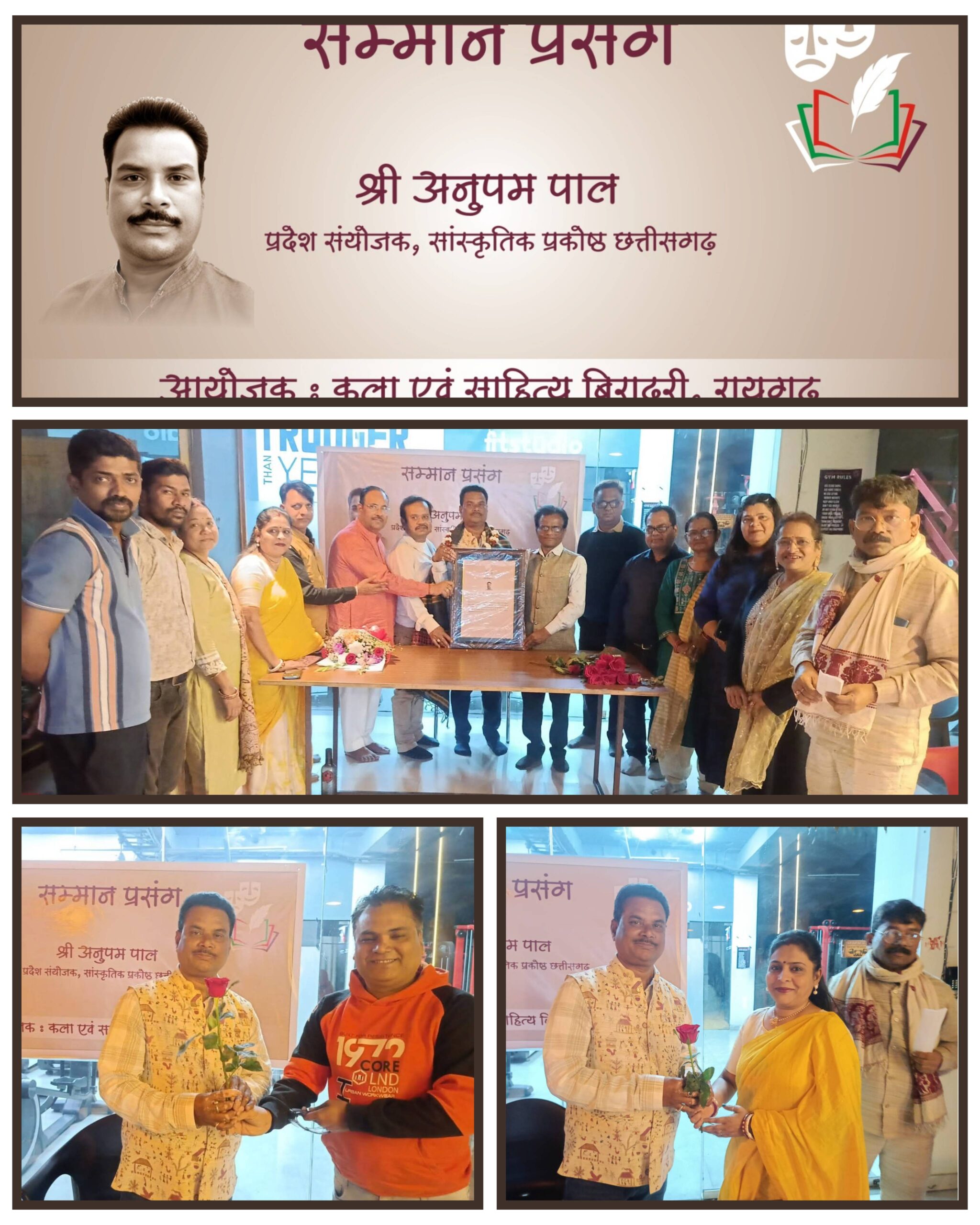 कला साहित्य बिरादरी ने सांस्कृतिक प्रकोष्ठ के प्रदेश संयोजक का “अनुपम” सम्मान, मसल्स फ़ैक्टरी जिम परिसर में हुआ गरिमामय आयोजन