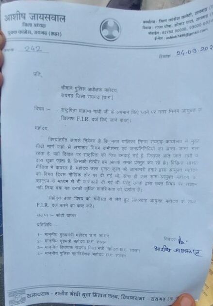 शहर सरकार की शह पर नगर निगम में कथित भ्रष्टाचार के मामले में ज्ञापन सौंपने के महज़ दो दिन बाद युवा कांग्रेस के जिलाध्यक्ष आशीष जायसवाल ने नगर निगम के दफ़्तर में भीतर की तरफ़ से ऊपरी सभागार को जाने वाली सीढ़ी के पास दीवार में बनी महात्मा गांधी की तस्वीर में थूके जाने के मामले को प्रमाण के साथ प्रमुखता से उठाकर फिर हलचल मचा दी है, हालांकि ये नया मामला अपने आप में बेहद संवेदनशील है। युवा कांग्रेस जिलाध्यक्ष आशीष जायसवाल ने युवा कांग्रेसजनों के साथ बुधवार को पुलिस अधीक्षक कार्यालय का रुख़ किया और नगर निगम में भ्रष्टाचार के साथ राष्ट्रपिता महात्मा गांधी के चित्र पर गंदगी किये जाने की लिखित शिक़ायत बाक़ायदा ज्ञापन सौंपकर की है। बहरहाल, अब देखने वाली बात ये होगी कि इन दोनों ही मामलों में कार्रवाई के नाम पर क्या कुछ निकलकर आता है। वैसे एक बात तो साफ़ हो गई है कि सरकार चाहे किसी भी दल की हो, नीचे से लेकर ऊपर तक भ्रष्टाचार और अव्यवस्था जनता के लिए नियति बन गई है। इधर भारतीय जनता पार्टी की स्थानीय ट्रोल आर्मी ने फ़्रंट फुट में खेल रहे युवा कांग्रेस के जिलाध्यक्ष आशीष जायसवाल को निगम की ठेकेदारी से जुड़े एक पुराने मामले में निशाने पर ले लिया है, लिहाज़ा कुछ दिनों तक इस मामले में खींचतान बनी रहने वाली है।