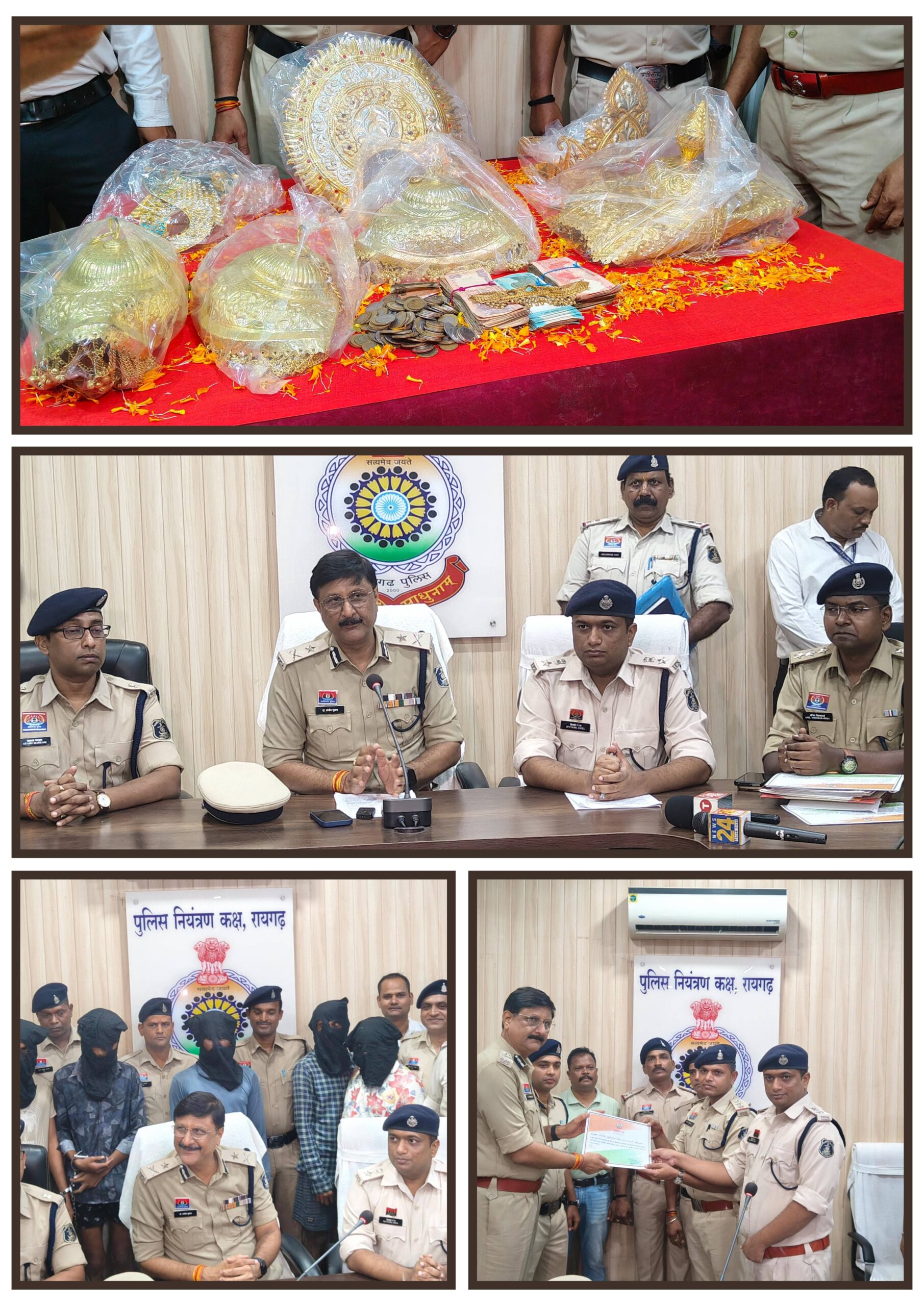श्याम मंदिर के चोरी-कांड को मुंगेली और बिलासपुर पुलिस की मदद से रायगढ़ पुलिस ने नौ दिनों में किया क्रैक, 6 आरोपियों की हुई गिरफ़्तारी, चोरी का सारा माल मत्ता बरामद